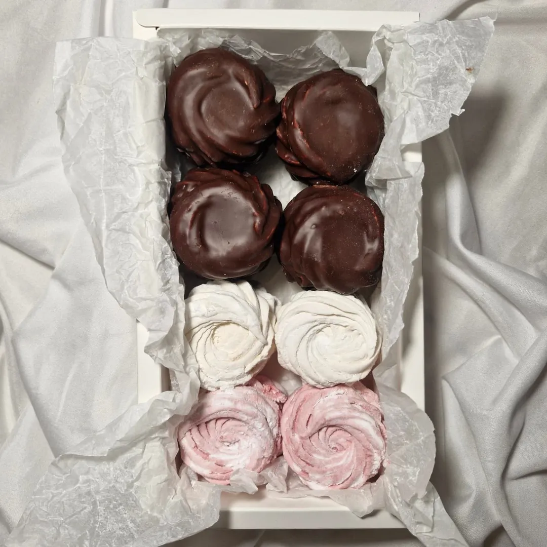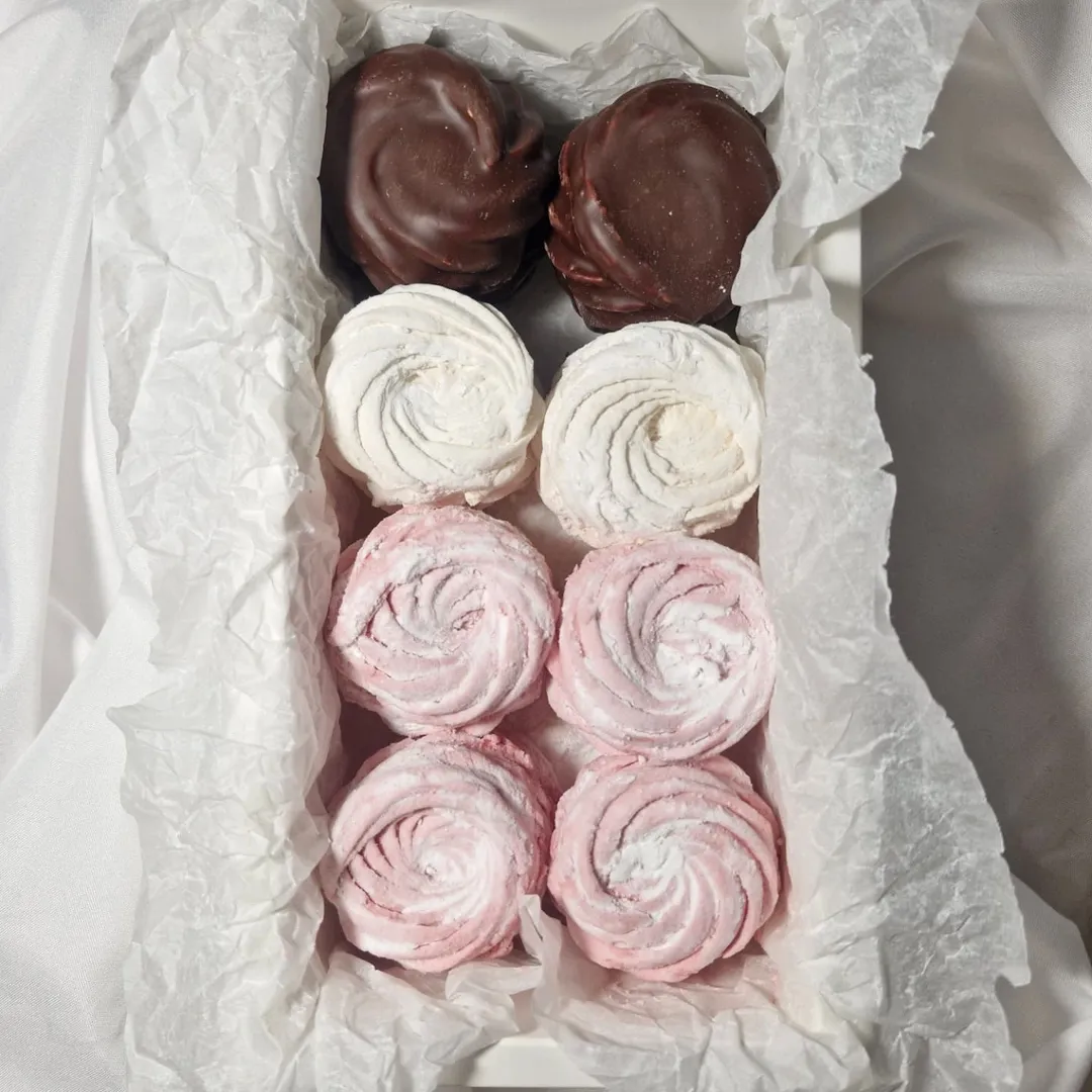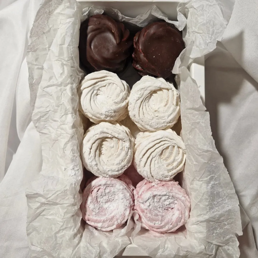 Стандартны памер: эфектная падарункавая скрыня, якая змяшчае каля 400 грамаў зефіра.