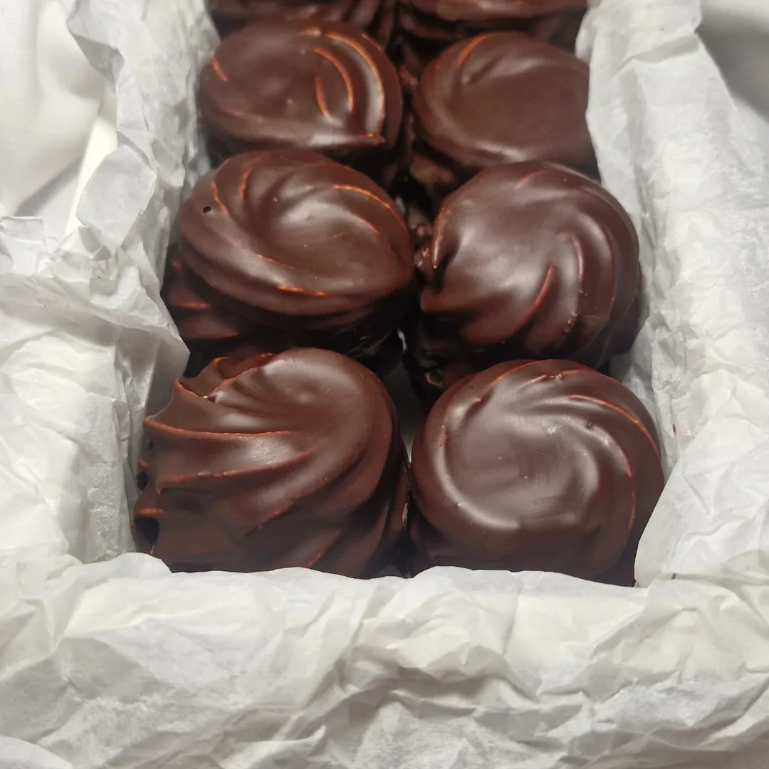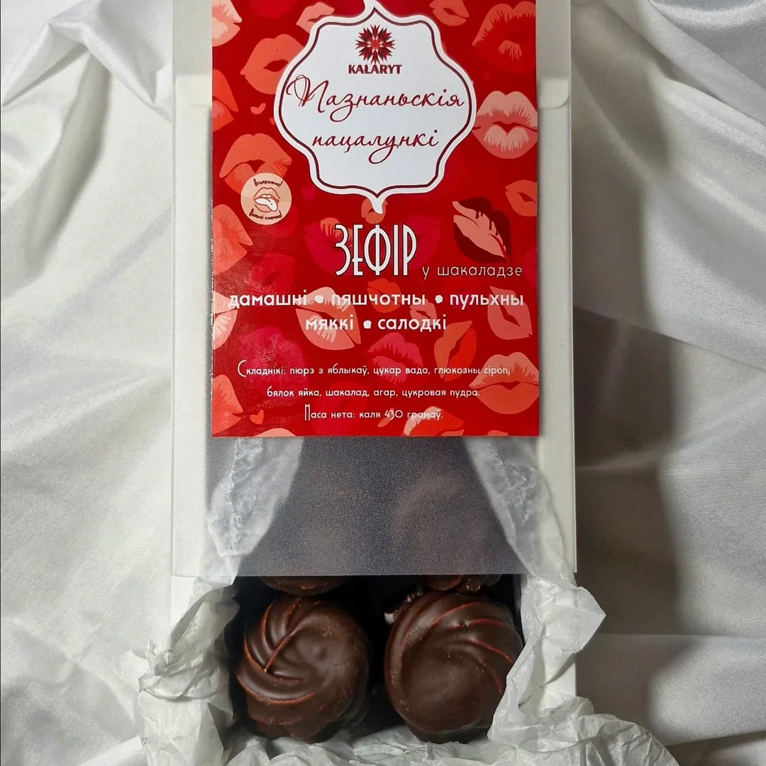 Салодкі водар Радзімы, зроблены рукамі беларусаў у Польшчы – «Пазнаньскія пацалункі» ў шакаладзе! Класічны белы зефір з тонкім хрумсткім шакаладным пакрыццём.